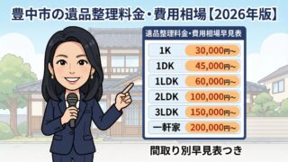 豊中市の遺品整理 豊中市の遺品整理料金・費用相場【2026年版】間取り別早見表つき 豊中市の遺品整理料金を間取り別に徹底解説。1K・2LDK・一軒家の費用相場から、料金が高くなる原因・追加料金トラブルの回避法まで、現場経験300件の遺品整理アドバイザー・森田あかりが解説します。 2026.03.16 豊中市の遺品整理