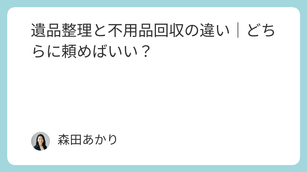 このページでは、遺品整理と不用品回収の実務レベルの違い・状況別にどちらを選ぶべきかの判断基準・安易な不用品回収業者選びに潜むリスクまで、現場経験をもとに整理します。